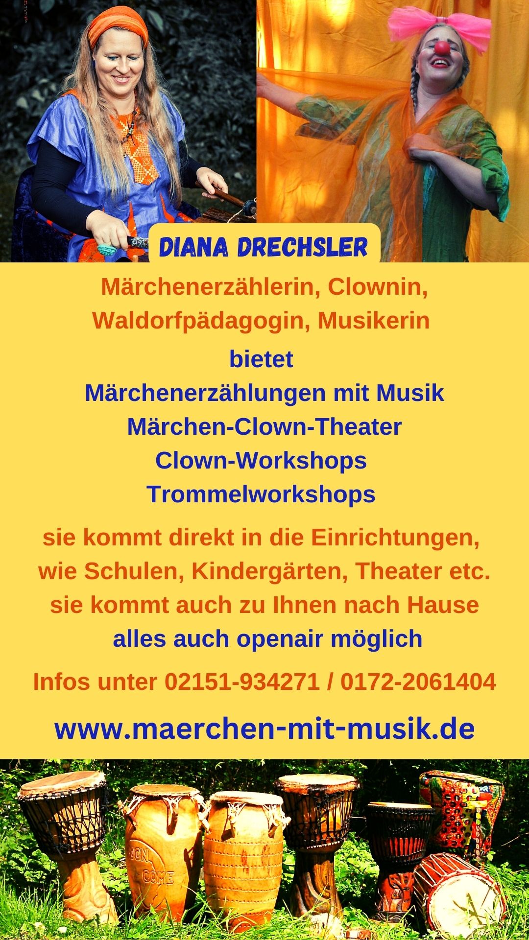 Diana Drechsler ( Waldorfpädagogin, Märchenerzählerin, Musiklehrerin, Clownin) gründete 2001 das Erzähl- und Clowntheater Diana Drechsler, ein mobiles Theater mit dem Sitz in Krefeld.